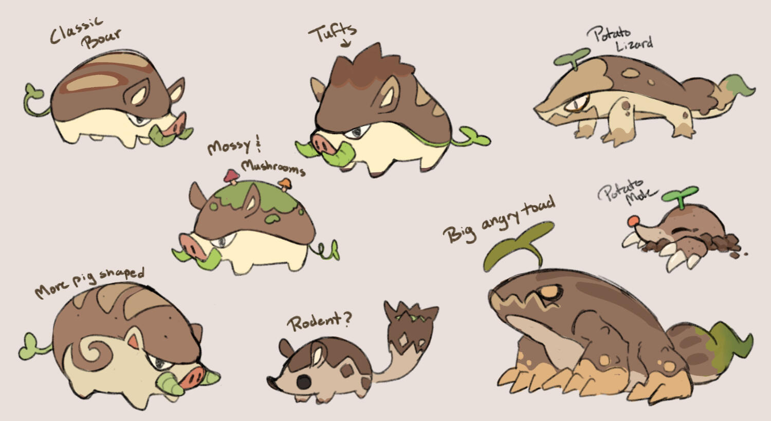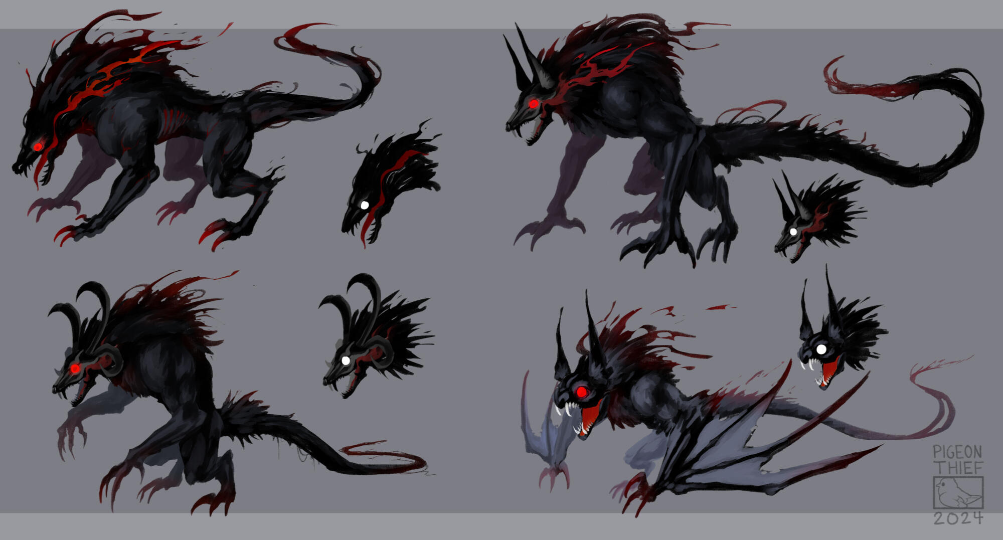 Below are a few concept sheets of various creature designs. Some are from projects that I've worked on, hence the varying art styles.