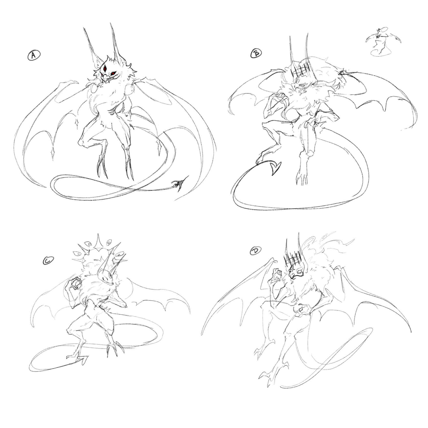 After some re-evaluation, we decided to change the theme of our project to be a monster dress-up game.Because of this, I went back to the drawing board to create new concepts that would better fit this direction.Our team was very keen on creating a bat monster, so my main goal was to create a compelling bat-design.