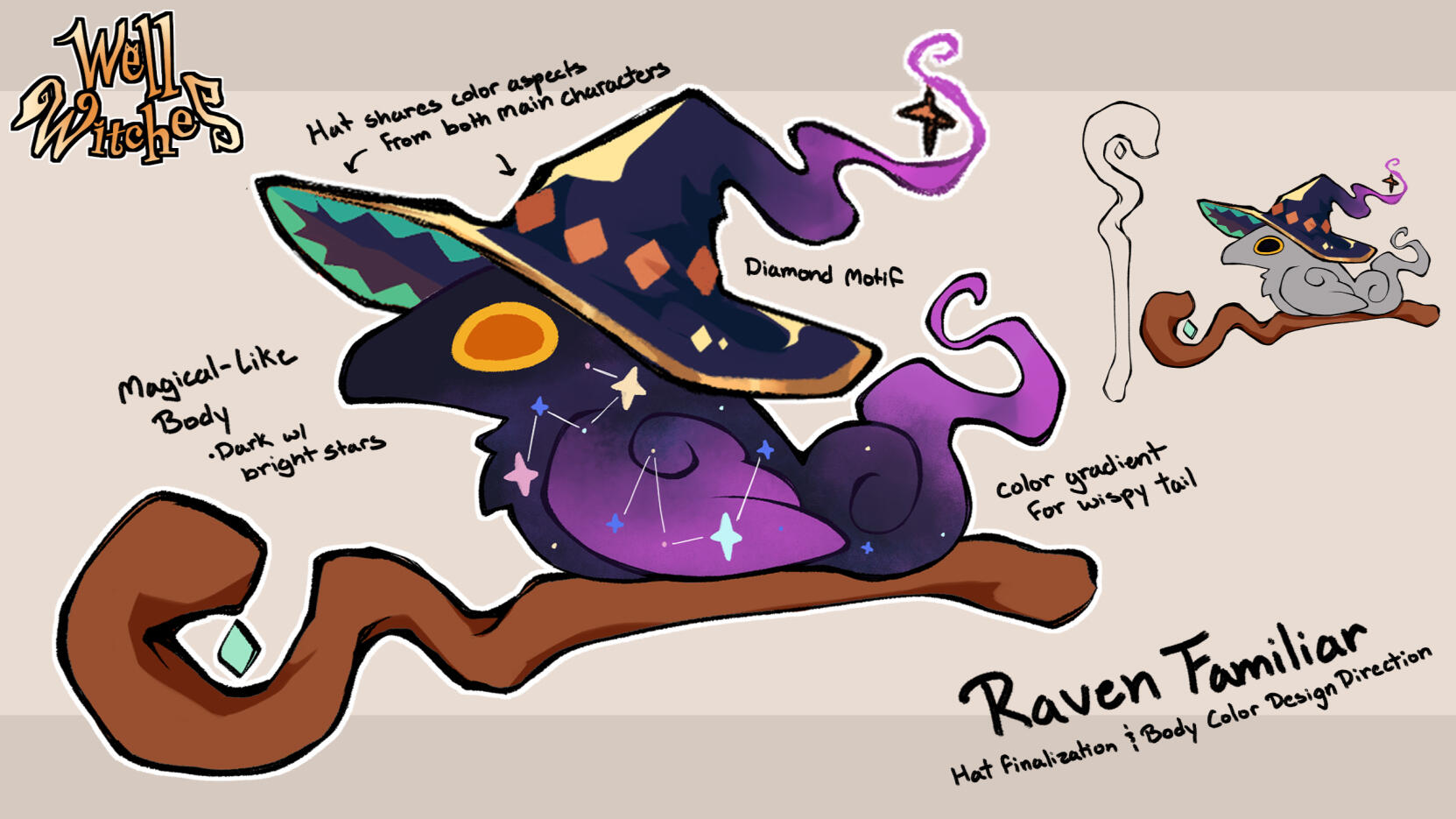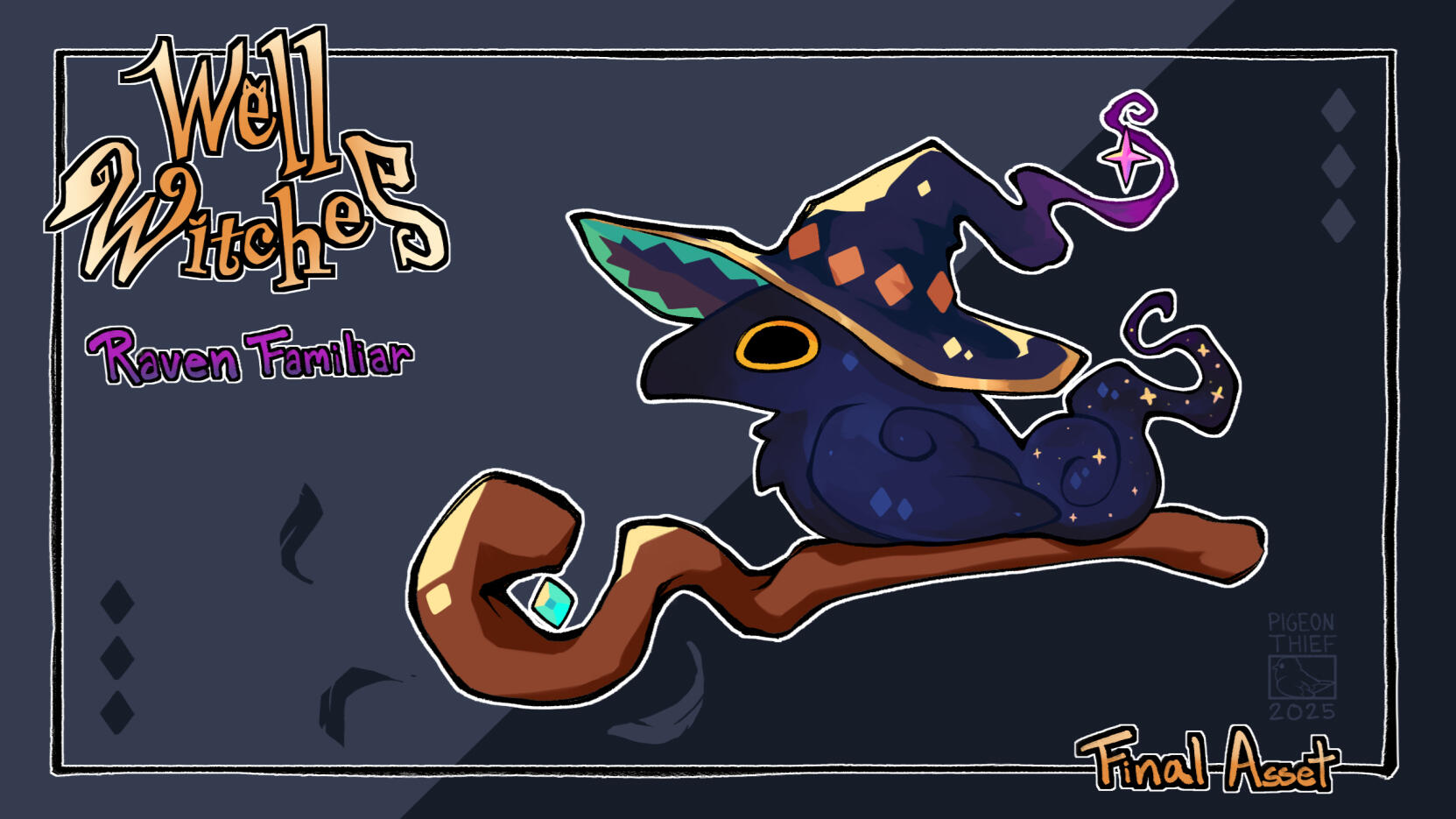 A showcase of the design process for the Raven Familiar in the game Well Witches. I was tasked to make both the concept art and the final asset to be implemented into the game.